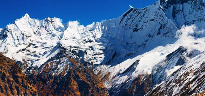 Annapurna Sanctuary Trek into the heart of Annapurna Himalaya is intended to fulfill the dream of many people to experience the significant mountain holiday at the base of the world´s famous Annapurna Himal 8,091m, the region’s most beautiful peak Machhapuchhre (6,997m), Annapurna South, Gangapurna and Hiuchuli etc. in the region. The place is high glacial basin lying forty kilometers directly north of Pokhara. This oval-shaped plateau sits at an elevation of over 4,130m, and is enclosed by a ring of mountains, the Annapurna range, most of which are above 7,000m. With the only access a narrow pass between the peaks of Hiunchuli and Machhapuchhre, from where Modi Khola River run-off glaciers drain into, the Sanctuary was not penetrated by outsiders until 1956. Because of high mountains on all sides, the Annapurna Sanctuary receives only 7 hours of sunlight a day at the height of summer. The unique combination of heights and depths in the Annapurna Sanctuary give rise to an astonishing diversity of ecosystems. The south-facing slope are “covered in dense tropical jungles of rhododendron and bamboo”, while the north-facing slopes, in the rain shadow, have “a drier colder weather similar to that of the near-by Tibetan Plateau.”