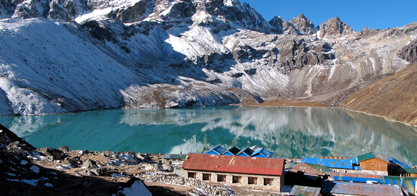 Gokyo valley trek is a fascinating trekking route of Khumbu region offering you the most magnificent view of mountains above (8000m.), beautiful lakes, world’s highest peak Mt. Everest, largest glacier of Himalaya, different Sherpa villages and their religion, scenic natural beauty beyond your imagination. Gokyo valley trek has a traditional trekking route to Everest base camp which gives you scenic view of highest peaks like Mt. Everest, Mt. Amadablam, Mt. Lhotse, Mt. Nuptse, Mt. Pumori and many more. One of the fascination feature of this trek is the view the tremendous ice ridge between Cho Oyo and Gyachung (2922m) located in Khumbu region.