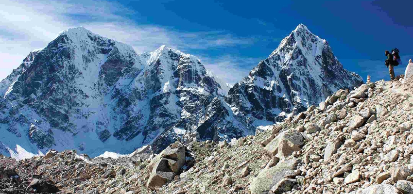 Today a great walk towards our main highlight and final destinations to reach Everest Base Camp, as morning walk leads on open wide valley with slow climb to reach above Khumbu glaciers, walking past moraine dunes reaching at Gorakshep, a place with few lodges on the junction of Everest base camp and Kalapatthar route. Gorakshep was a base camp of Everest expeditions in early 1950’s to late 1970’s before the route was made further away to present base camp. From Gorakshep few hours walk over moraine and glacier to reach our ultimate destination at base camp with sweeping views of giant peaks of Nuptse-Lo la, Nuptse with notorious huge Khumbu Ice Falls and glaciers. In high mountaineering season this place will be active with climbers and crews with many camps set on top of moraine and glaciers. After a grand time then head back to Gorakshep for highest overnight stop of the adventure with fantastic memories of the day walks to Everest base camp.